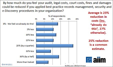 Little surprise that the legal discovery process can take typically weeks or months in most organisations and around 25% of legal costs could be saved with best practice records management, security and e-discovery procedures: